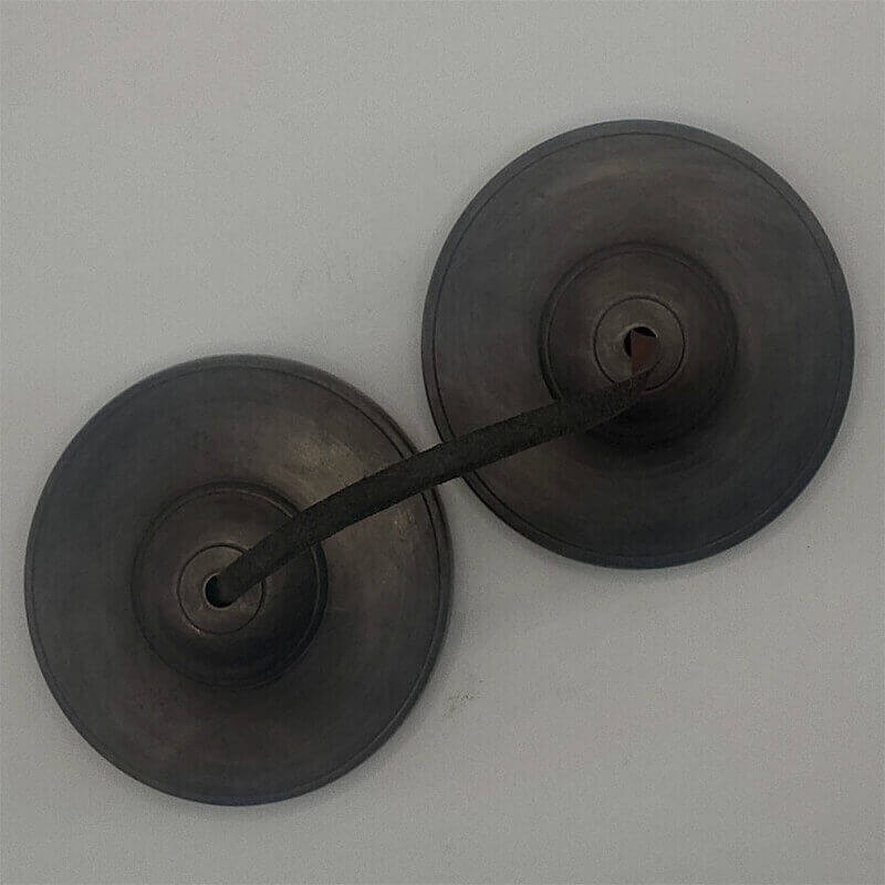 Plain Tingsha Bell is a small traditional Tibetan instrument made of two round metal plates joined by a leather string or cord. These plates are usually made from a mix of special metals. Unlike fancy tingshas, the plain one has no designs, carvings, or symbols on it. To use it, you gently strike the two pieces together, and it creates a clear, high-pitched ringing sound that lasts for a few seconds. The sound is very calming and peaceful. However, people use plain tingsha bells in meditation, yoga, healing sessions, or during prayer. The sound helps clear the mind, remove bad energy, and bring focus and relaxation. It is also used to mark the beginning or end of a meditation session. Even though it looks simply, the sound it makes is strong, pure, and full of positive energy. Many people love it for its gentle, beautiful tone and peaceful feeling.